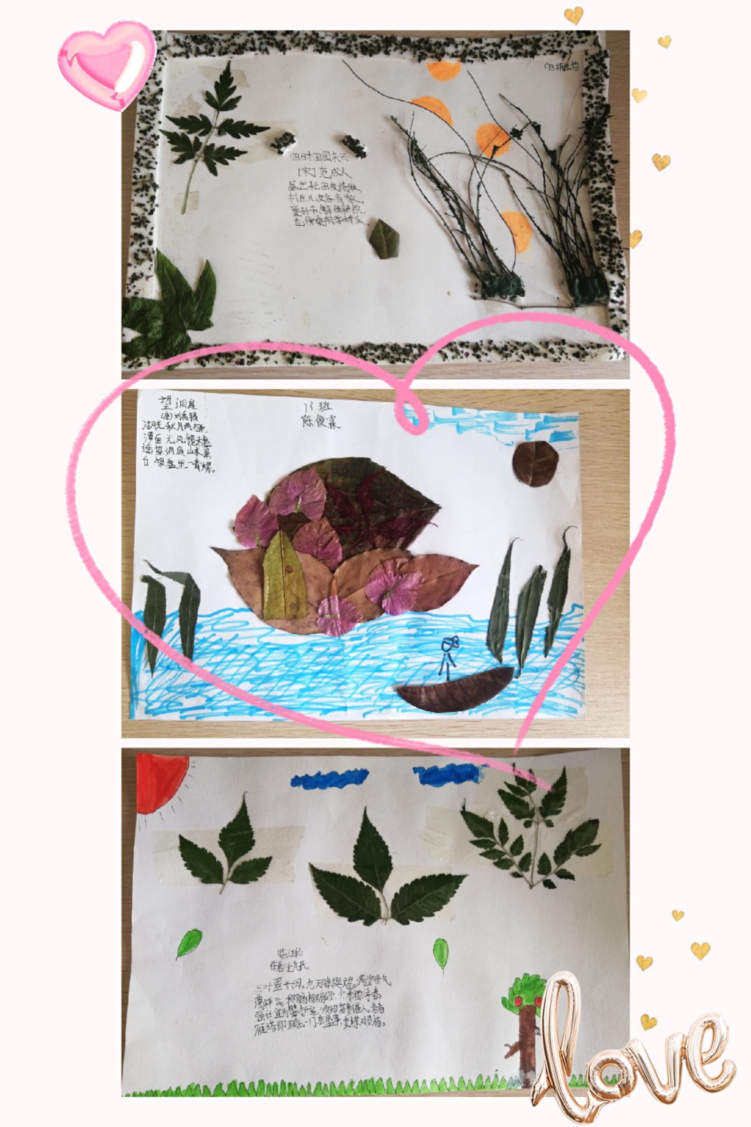 影集展示、书法作品、主题小报、树叶剪贴画(诗配画)、作文及秋的古诗